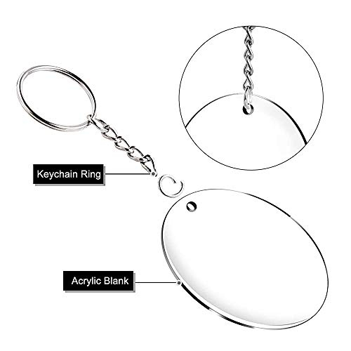 Pacchetto: 24 pezzi di pannelli acrilici da 2 pollici e 24 portachiavi, il set include anelli per portachiavi, catena e anelli di salto che possono essere facilmente assemblati per creare vari portachiavi personalizzati.