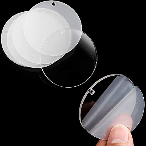 Dischi acrilici trasparenti: essere creativi e iniziare a creare artigianato personalizzato, progettare i vostri portachiavi unici e regalarli come regalo in momenti o occasioni speciali. Ogni lato del disco è coperto da uno strato di protezione in plastica per evitare graffi o danneggiati.