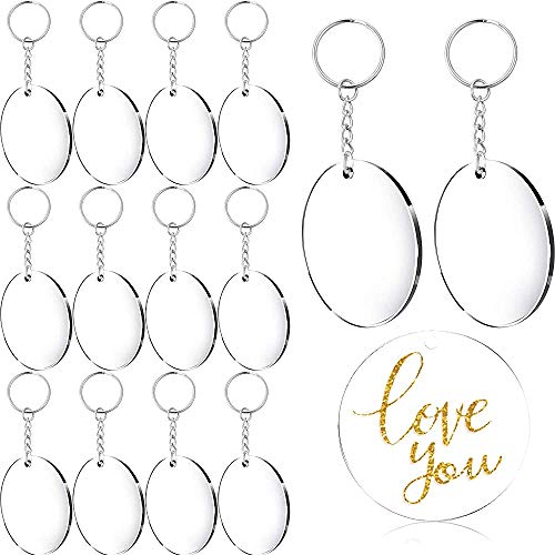 Portachiavi in acrilico, dischi di cerchio trasparente in acrilico, portachiavi rotondo trasparente per progetti fai da te e artigianato, 2 pollici (24 pezzi)