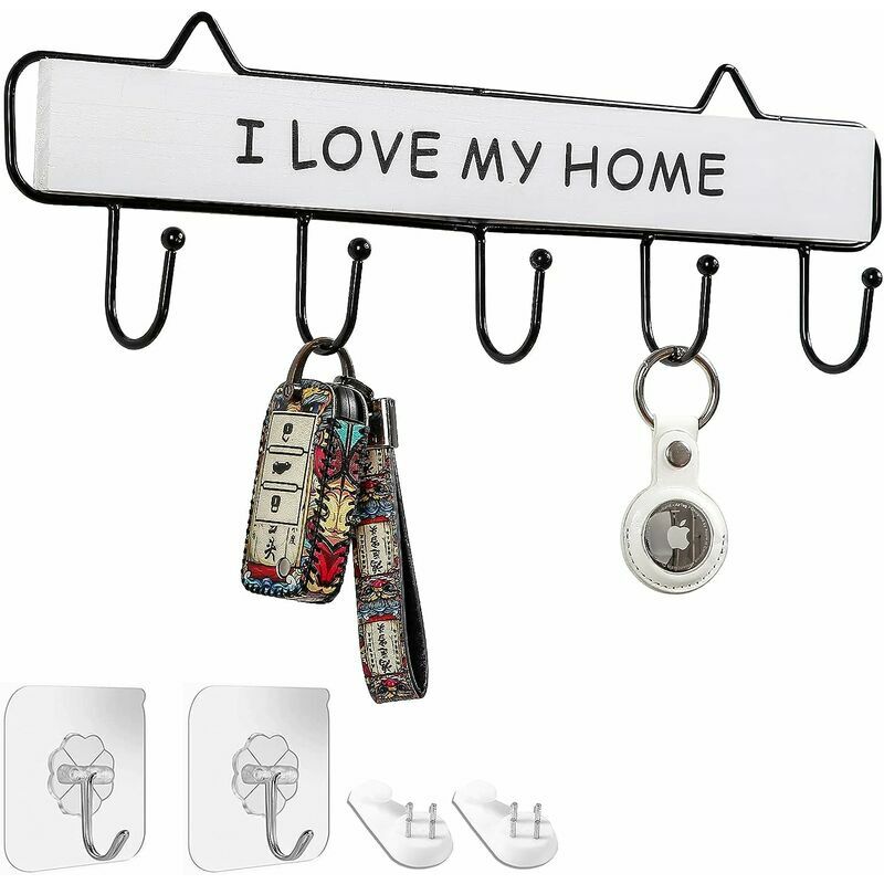 【Portachiavi adesivo】Attaccando questo gancio, puoi appendere piccoli oggetti nella stanza, come chiavi, portafogli, collane, ecc.。Quando attraversi la porta, puoi appendere le chiavi, non devi cercare le tue chiavi come prima.^ 【Installazione solida】 Nella confezione ci sono due set di chiodi, un set di ganci autoadesivi, un set di chiodi, puoi sceglierne uno per installare, ovviamente, qualsiasi tipo di installazione non richiede perforazione, facile da installare.L'intarsio in legno con le lettere "I love my home" può rendere la stanza più calda possibile. ^ 【Decorativo per pareti e porte】Può aiutare a fare un uso saggio dello spazio di archiviazione dietro il muro e la porta, impedire che piccoli oggetti vengano gettati via, lontano dal disordine e iniziare a rovesciarsi. essere conservati in modo ordinato.^"