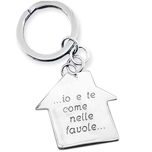 Casa dolce casa, regalo ideale per celebrare l'inizio di una convivenza insieme!Portachiavi in argento massiccio 925 millesimi rodiato con anello brisé in metallo cromato