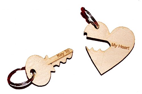 Portachiavi per coppie con incisione in inglese "Key to my Heart” (lingua italiana non garantita)