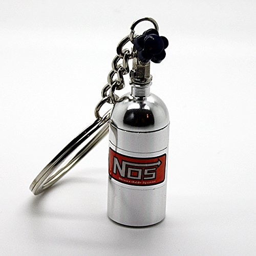 Portachiavi deluxe in metallo - metallo cromato spazzolato, effetto ottone, nastro in pelle, Gasflasche NOS Chrom