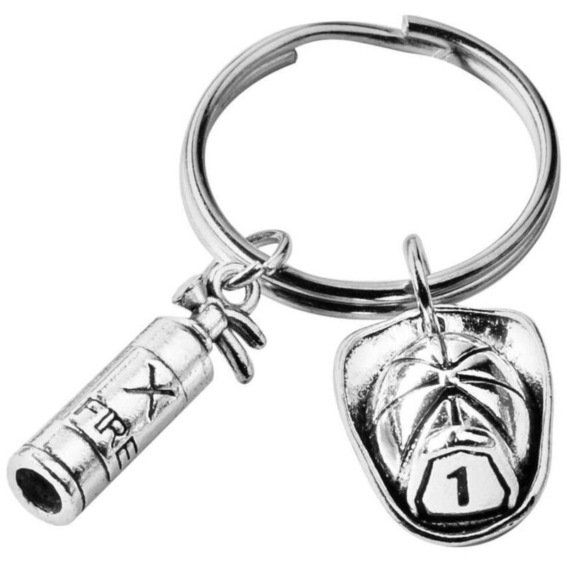 Questo portachiavi mette a fuoco i vigili del fuoco! Nel portachiavi sono appesi un estintore e un elmetto da pompiere dal design accattivante. Oltre alle chiavi, funziona bene anche per chiavette USB e schede di accesso. Il portachiavi è ipoallergenico e realizzato in metallo resistente. - Portachiavi con tema estintore - Si adatta bene a chiavi, chiavette USB e altro - Realizzato in metallo Specifiche: Colore: argento Materiale: lega di zinco Dimensioni, estintore: 2 x 0,5 cm Dimensioni, casco: 2 x 1 cm