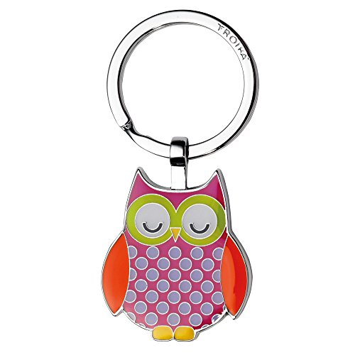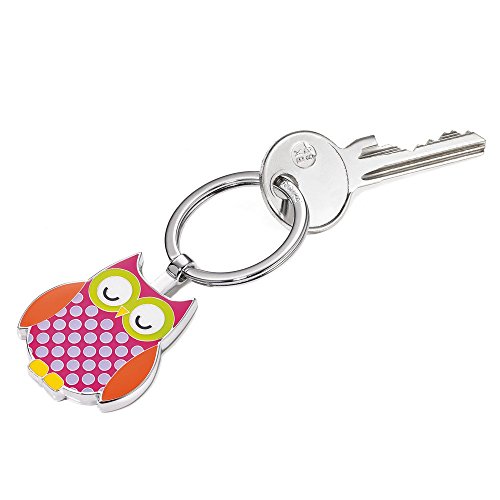 Portachiavi con gufo, metallo smaltato, cromato e placcato, colore: rosa