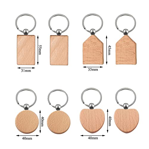 Portachiavi in Legno Personalizzato da 8 Pezzi, Fai Da Te Vuoti Portachiavi in Legno, Portachiavi in Legno da Incidere, Portachiavi in Legno per Incidere, Dipingere e Design Creativo Fai-Da-Te,4 Forme