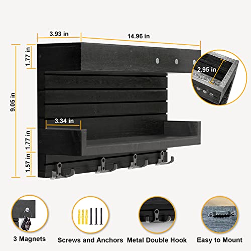 Portachiavi da Muro con Ripiano, Appendichiavi e portaoggetti da Parete in Legno, Organizzatore di Posta con 4 doppi Ganci Chiave per Chiavi, Lettere, giornali