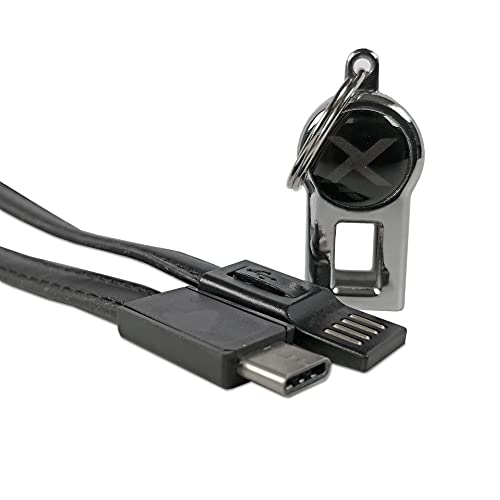 PORTACHIAVI in pelle | Portachiavi cavo di ricarica USB | Portachiavi nero in vera pelle con tre tipi di connettore Micro, TypeC, i Phone | Idea regalo tecnologico (TypeC)