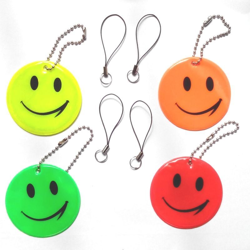 1 pezzo portachiavi rifrangente da scegliere in 4 colori con faccia sorridente smile, da scegliere nel menù sotto. Misura del pendente circa 6cm di diametro, il materiale è PVC riflettente. Si applica in pochi secondi dove volete con la comoda catenina e vi permetterà di rendere visibile anche da lontano l'accessorio dove lo andrete ad applicare. Ideale per zainetti, marsupi o altri accessori di bambini che devono uscire all'esterno. Con un riflettente si viene visti da molto lontano evitando di essere investiti. Pendente riflettente ideale come regalo da applicare in zaini o borse, con questo pendente che si illumina una volta illuminato verrete visti da molto lontano evitando di essere investiti. Faccina SMILE da scegliere in 4 colori.