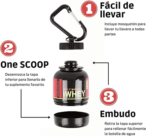 Portachiavi proteico Whey portatile da 100 ml e 200 ml, mini contenitore per il trasporto integratori per bevande in polvere, contenitore per gym, con moschettone (100 ml / nero)