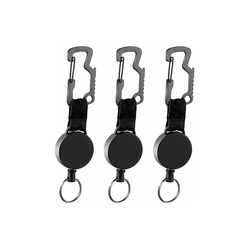 Fune metallica retrattile - : la lunghezza della fune metallica può essere estesa a circa 58 cm, liscia, facile da tirare e facile da trasportare, la fune metallica retrattile in acciaio inossidabile è robusta e resistente alla corrosione grazie al materiale temprato e protetto con il rivestimento antiruggine extra.【Portachiavi retrattile per impieghi gravosi】: con una forza di retrazione in acciaio inossidabile da 0,039" fino a 4 once, la bobina del badge è abbastanza forte da sostenere il peso della maggior parte delle chiavi senza scivolare spesso.【 Portachiavi multifunzionale: il gancio aggiornato non solo può appendere chiavi e carte d'identità, ma il portachiavi retrattile con moschettone multifunzionale può essere utilizzato anche come apribottiglie e chiave, perfetto per feste, shopping, lavoro e attività all'aperto.【Facile da usare Usa chiavi e badge: il portachiavi con moschettone per un rapido accesso conserva chiavi, badge identificativi, tessere RFID, tag ID, tessere di