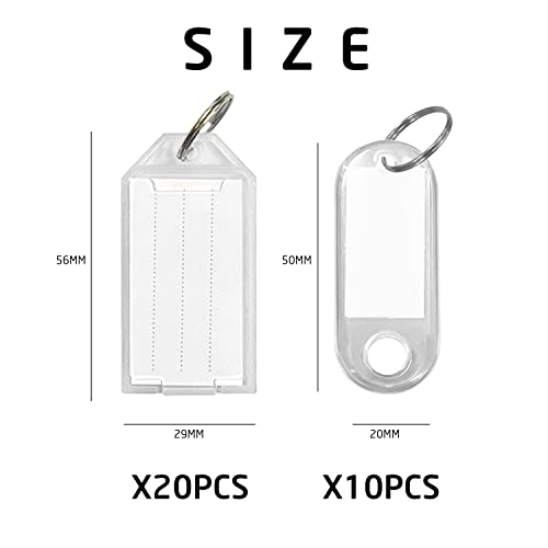30 portachiavi scrivibili con etichetta, targa trasparente, comitato di classificazione degli articoli, utilizzati per contrassegnare animali domestici, bagagli, chiavi