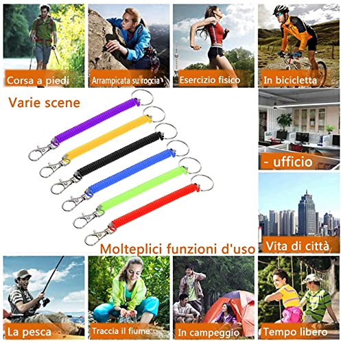 12 Portachiavi a Spirale Elastica Portachiavi Retrattili con Portachiavi a Molla per Esterni,Lavoro,Famiglia,6 Colori