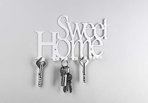Portachiavi, porta strofinacci da cucina con ganci, supporto organizer da parete Sweet Home White