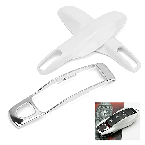 Portachiavi per Telecomando per Auto Accessori per Portachiavi per Telecomando per Auto in ABS Adatto per Modelli Porsche Cayenne 92A Dopo il 2011(Bianco perla + guscio centrale argento)