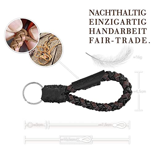 Portachiavi in vera pelle realizzato a mano. Cordino intrecciato unisex, in diversi colori, per uomo e donna (nero e marrone)