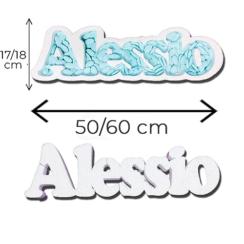 ✅ PERSONALIZZATO: Tutti i nomi in polistirolo sono personalizzabili fino a un massimo di 12 caratteri Lunghezza max 50/60 cm H 17/18 cm la misura può variare ai caratteri del nome.