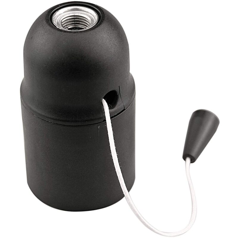 ARDITI - portalampada E27 liscio in termoplastico nero ed interruttore a tirante