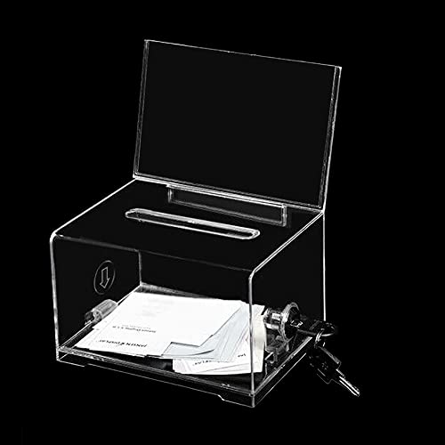 Portadocumenti in acrilico con serratura - Scatola sicura per suggerimenti perfetta per biglietti da visita (15,9 x 11,4 x 10,2 cm) trasparente