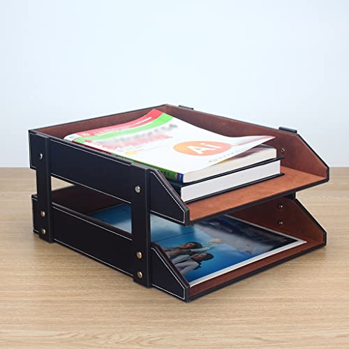 Portadocumenti da scrivania Organizzatore della scrivania in pelle, supporto vassoio for lettere impilabile a 2 livelli for file, riviste, carta, forniture for ufficio, organizzazione for ufficio for