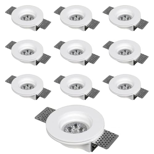 10x Portafaretto In Gesso Bianco Da Incasso - Tondo GU10 Ø 100 mm - Mondo Led