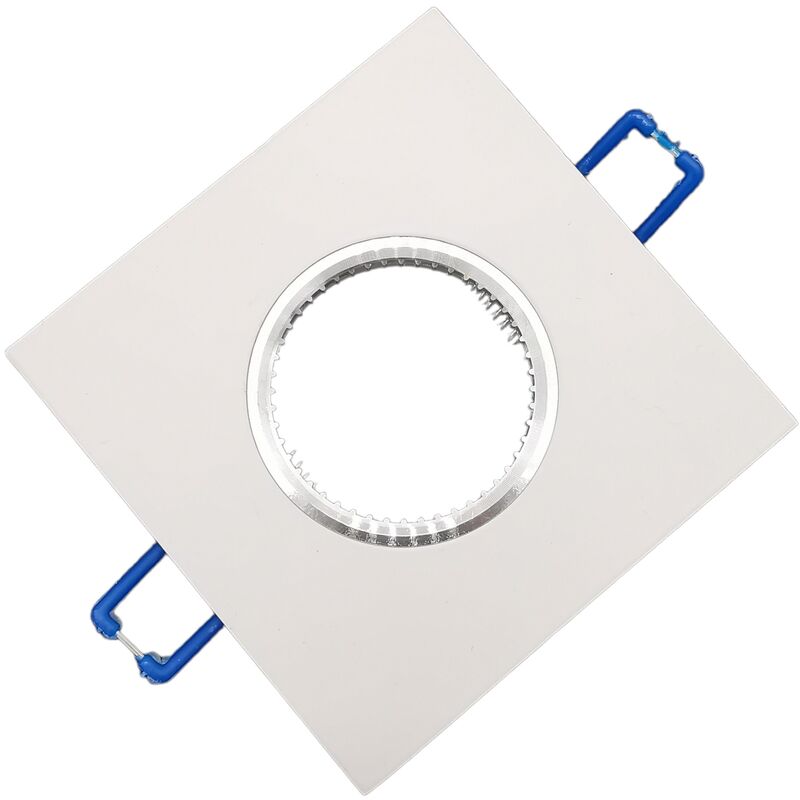 Portafaretto in alluminio fisso completo di fermo blocco lampadina ed alette a molla per il fissaggio. La cremagliera frontale è svitabile per semplificare eventuale sostituzione dei faretti. Design minimal ultra slim. Caratteristiche tecniche Materiale Alluminio Colori disponibili Marrone - Bianco - Argento - Nero Orientabile No Innesto reggi faretto Cremagliera frontale svitabile Dimensioni Foro esterno 95 mm Foro di incasso 60-70 mm Foro alloggio lampadina 50 mm(misura standard) Lampadina non inclusa