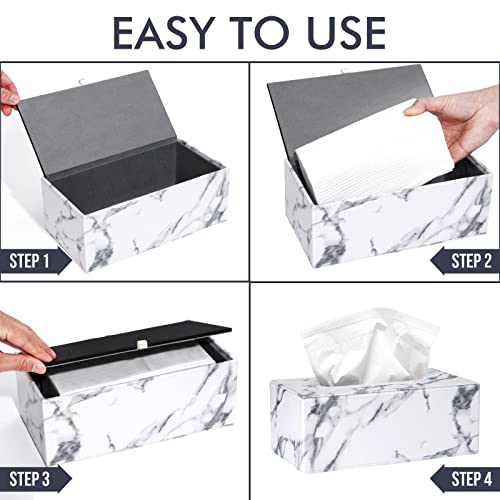 Portafazzoletti Rettangolare Scatola per Fazzoletti in Pelle PU Portatovaglioli per Ufficio e Casa, Marmo