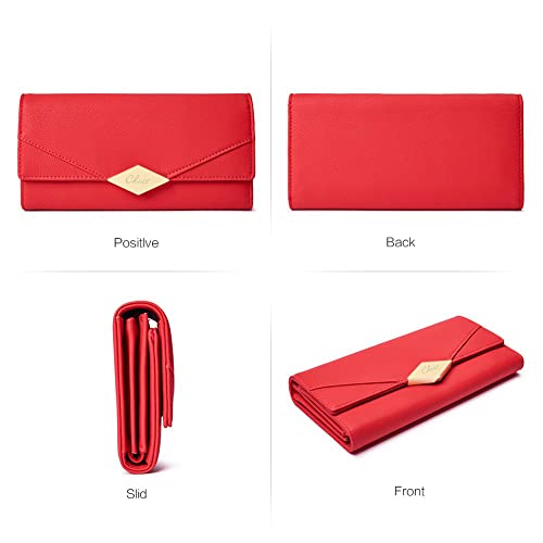 Portafogli Donna della PU Leather Lungo Frizione Sacchetto del Raccoglitore Della Moneta con Cerniera Porta Carte di Credito rosso