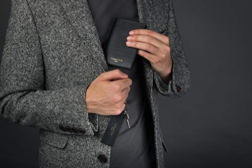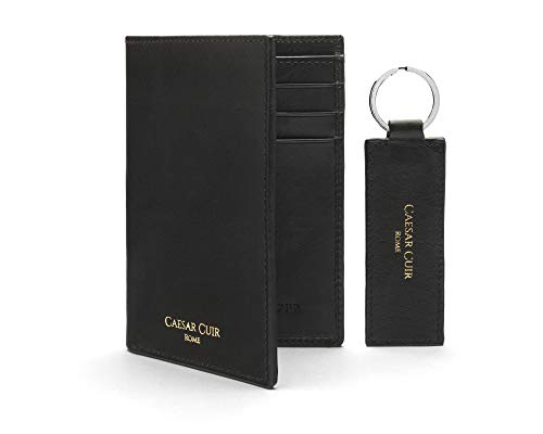 Portafogli da uomo in pelle di Cesare Cuir nero con RFID blocco con portachiavi in pelle sottile bifold Mens Portafogli - Protezione senza contatto di alta qualità nera in vera pelle bovina