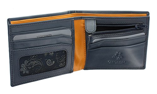 Portafoglio Bi-Fold di pelle da uomo Visconti Parma in due tonalita. Collezione PABLO PM101 - Blu / Senape