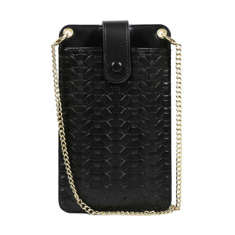 Portacellulare realizzato in pregiata pelle PU con motivo intrecciato, ecologico e leggero - Chiusura con bottone automatico per un facile accesso al telefono nella borsa del telefono - La tracolla a catena staccabile è confezionata all'interno della borsa del telefono a tracolla ;