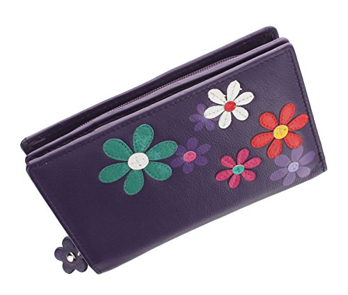 Borsa morbida in pelle morbida da donna con applique dettaglio di fiori 14 cm x 9.5 cm x 2.5 cm