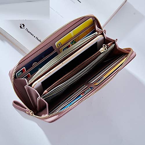Portafoglio da donna in pelle, grande, con chiusura lampo, da donna, Nero (Rosa) - .