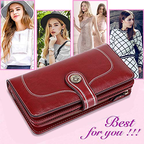 Portafoglio Donna Pelle RFID Portafoglio Grande Donna con Cerniera Portafogli Capienti Donna-26 Solt per Carte Portafoglio Lungo Cuoio Borsellino Donna Grande Pelle Portamonete Donna XXL, Rosso