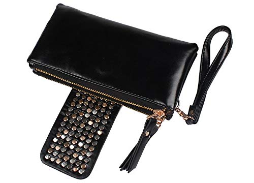 Portafoglio da donna, in pelle di PU, con scomparto per carte e fiocco lungo esterno, nero (Nero) - D4SS5
