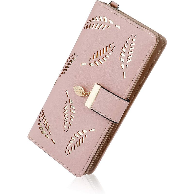 Borsetta lunga: il portafoglio da donna è realizzato in pelle sintetica, morbida pelle con chiusura a scatto, pieghevole, la sensazione è liscia e confortevole, con resistenza all'abrasione e duttilità. Grande capacità: la pochette da polso ha 12 slot per carte, inclusa 1 finestra ID, 1 grande slot per contanti, 1 grande slot per accessori, 3 scomparti nascosti. Può contenere facilmente contanti, carte di credito e smartphone (iPhone8 plus). Design cavo Arved: la borsa da donna è progettata con pelle tagliata al laser, design a foglia cava, alla moda e bella. shopping, appuntamenti, viaggi nella vita quotidiana, ecc. Portatile: le dimensioni del portacarte sono 7,5 x larghezza x 3, 7 x altezza 0,94 (19 cm x 9,5 cm x 2,4 cm). può tenerlo a portata di mano o metterlo nella borsa. Bel regalo: il portamonete con cerniera è un ottimo regalo per donne/ragazze.È adatto per San Valentino, festa della mamma, compleanno, Natale e altre occasioni speciali. La lunga borsa può aiutarti a