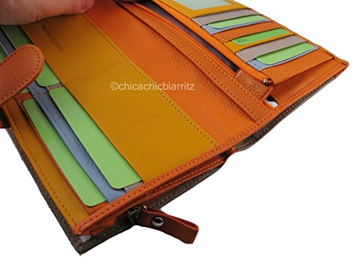 Portafoglio da donna in vera pelle - Colore beige / Arancio - 19 x 11,5 x 3 cm