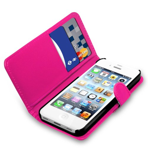 Portafoglio in pelle Apple iPhone 5S / 5 di colore rosa caldo di vibrazione della copertura della cassa + Touch Stylus Pen + protezione dello schermo & Panno