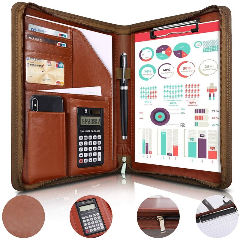 Design eccellente: il design intelligente dei singoli scomparti, combinato con una superficie strutturata nell'elegante nero notte, rende questa scrivania un vero gioiello. LA PELLE PU PREMIUM PREVIENE GRAFFI E DEFORMAZIONI E IMPERMEABILE: cartella per conferenze A4 realizzata in pelle sintetica PU premium resistente all'acqua e nylon strutturato, previene graffi e deformazioni, impermeabile. L'esterno in PU portatile e la struttura confortevole proteggono i tuoi documenti in condizioni come pioggia, neve, polvere e acqua e caffè versati. Perfettamente organizzato: nella cartella business, puoi riporre in sicurezza le tue carte di credito, biglietti da visita, riviste e accessori. Ciò significa che hai sempre una panoramica e puoi concentrarti completamente sui tuoi obiettivi. PIÙ SPAZIO PER TE: All'interno della cartella degli appunti troverai molti scomparti e supporti per i tuoi utensili. Inoltre, il generoso scomparto interno diviso ti dà la possibilità di riporre in tutta
