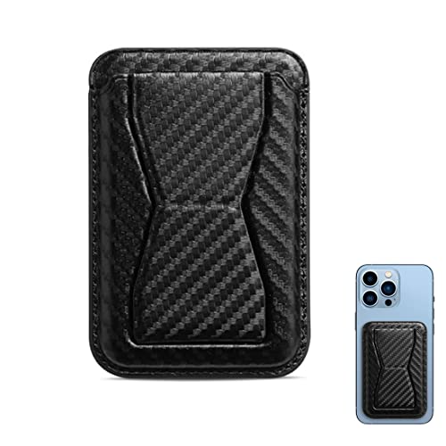Portafoglio in pelle con Supporto, Regolabile e MagSafe, Pelle Portafoglio per iPhone MagSafe, Compatibile con iPhone 14/14 Plus/14 Pro/14 Pro Max/serie 13/12/11, Nero in fibra di carbonio