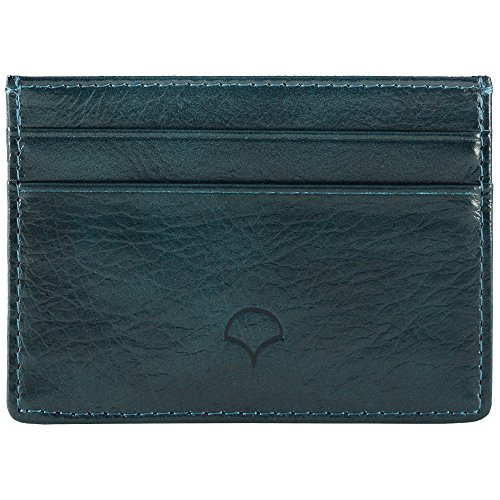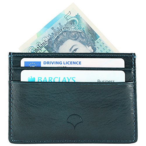 Portafoglio per possessori di carte di credito in vera pelle, blu navy - blocco RFID, 5 scomparti, design sottile