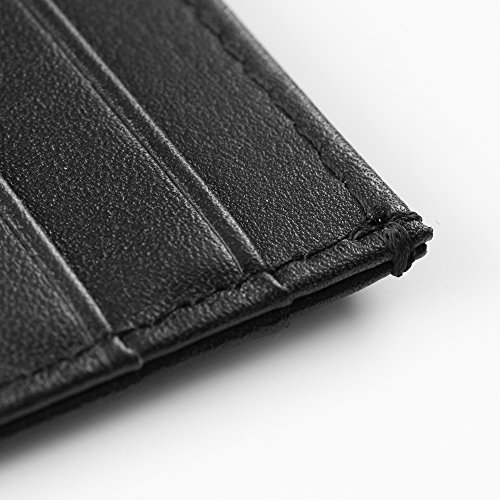 Portafoglio per possessori di carte di credito in vera pelle, nero - blocco RFID, 5 scomparti, design sottile