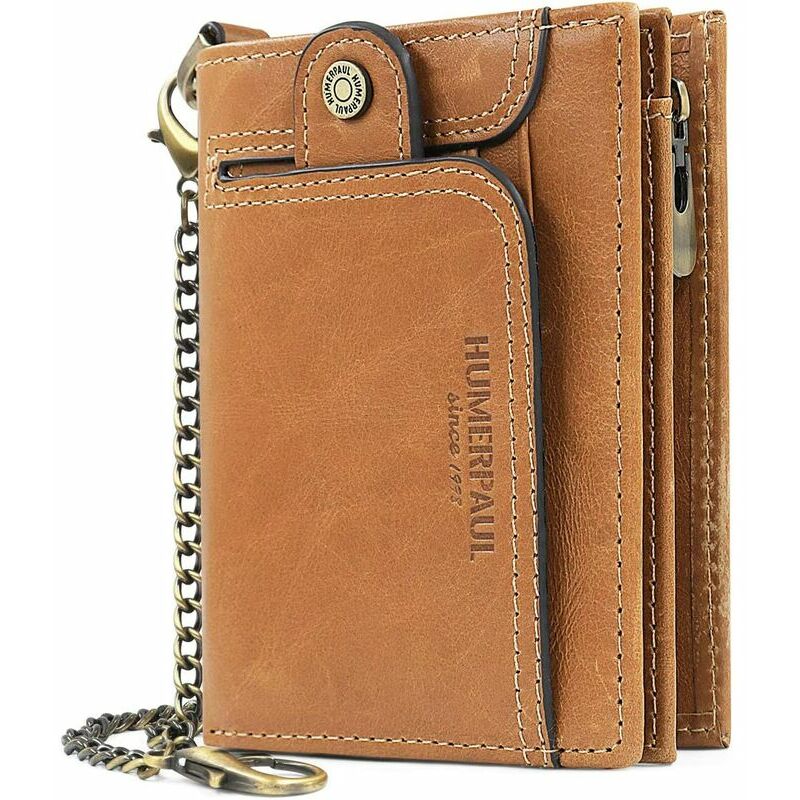 Portafoglio da uomo in vera pelle - Il portafoglio da uomo è realizzato al 100% in vera pelle bovina con una sensazione confortevole e cuciture rinforzate per una maggiore durata, ed è anche semplice da mantenere. Se curato adeguatamente, durerà per molti altri anni. [Grande capacità] Il portafoglio in pelle da uomo è dotato di 14 slot per carte (blocco RFID quando il portafoglio è chiuso), 1 scomparto per banconote, 1 tasca con cerniera per monete e carte . Mantieni tutto ordinato e organizzato. Il design con chiusura a scatto e la catena antifurto li rendono più sicuri e protetti. [Blocco RFID] Il portafoglio da uomo rfid è dotato di tecnologia RFID avanzata, che blocca i segnali RFID e protegge notevolmente le informazioni e i dati importanti memorizzati su chip RFID contro analisi non autorizzate. Proteggiti con un portafoglio RFID. [Dimensioni portafoglio] Portafogli e portacarte (chiusi) 9,5 x 11,5 x 2,5 cm. Facile da trasportare e impugnare, può essere messo in borsa o tenuto