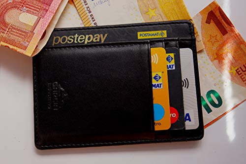 Portafoglio Uomo Piccolo Sottile e Elegante - Blocco RFID - Nero In Pelle di Alta Qualità - Porta Tessere Porta Documenti Porta Carte Di Credito - Design 2020 Italiano
