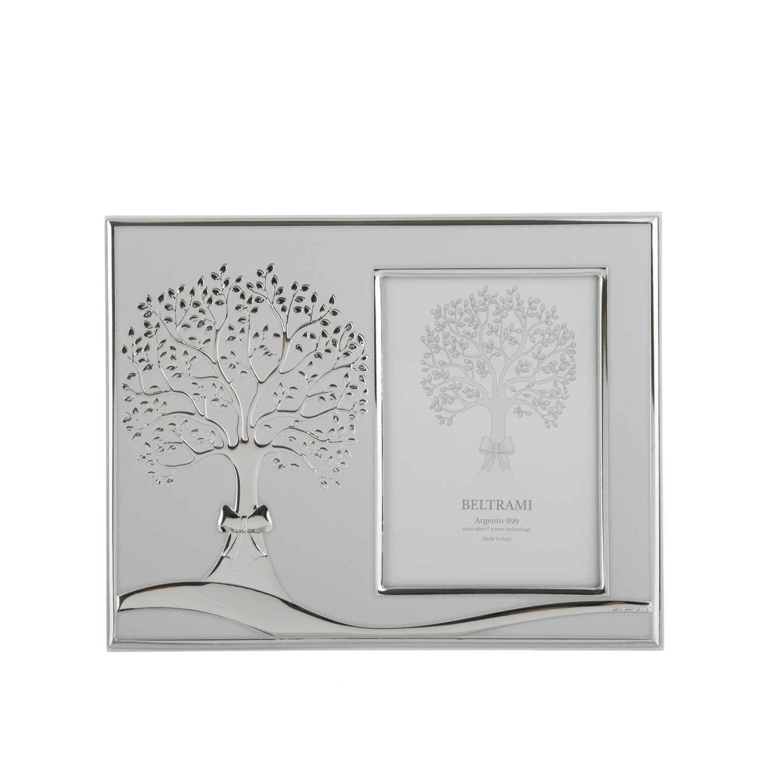 Le cornici portafoto Beltrami sono il risultato di una lunga tradizione italiana, disegnate e prodotte con i migliori materiali. Realizzata con argento Miro Silver, innovativo metallo con trattamento superficiale che include uno strato di argento puro 999.95, questa elegante cornice saprà valorizzare al meglio i tuoi ricordi più belli. L'elegante cornice Albero della vita è caratterizzata da un rivestimento antigraffio, resistente all'ossidazione e che mette in risalto la luminosità delle tue fotografie, sia a colori che in bianco e nero. Grazie al pratico supporto in legno sul retro, puoi posizionare la cornice stabilmente su tavolini, comodini e all'interno di librerie. Si consiglia di pulire con un panno morbido. Dimensioni cornice: 23,3x18,3x8,5 cm. Adatta a foto 10x15 cm.