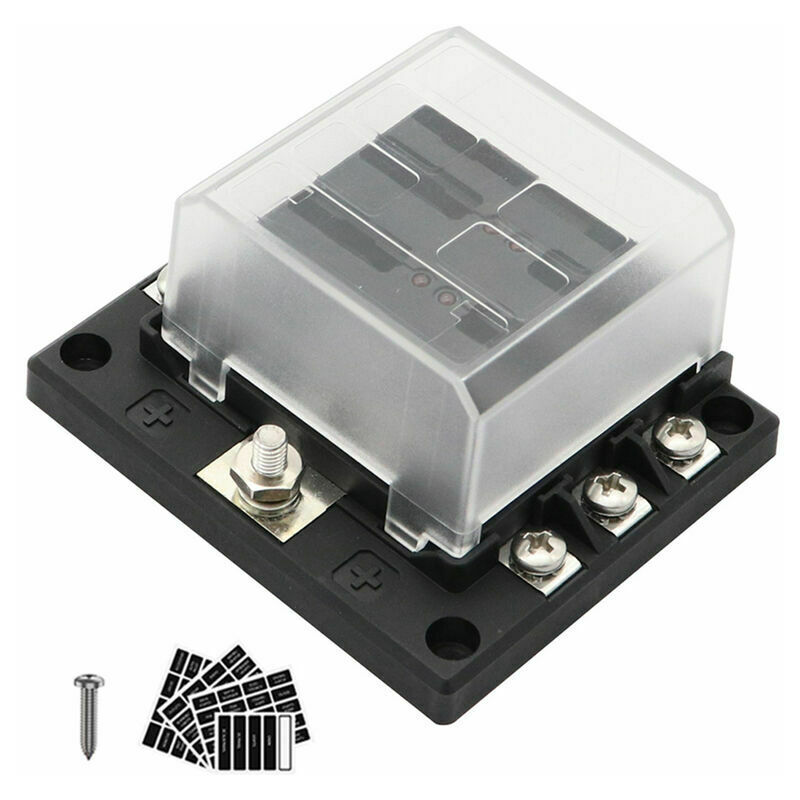 ingresso】: 100A [Si consiglia di inserire le specifiche del cavo]: #4-6 AWG 【Alta corrente di uscita】: 30A per ciascun circuito [Specifiche del cavo di uscita]: #12-16 AWG 【Colore indicatore】: rosso [Funzione indicatore]: quando la luce LED rossa è accesa, significa che il fusibile è stato scollegato e il fusibile deve essere sostituito in tempo per continuare a funzionare.[Installazione del prodotto Range]: può essere installato su auto, ville, camper, autobus, yacht, barche, ecc. [Ambito di utilizzo del prodotto]: può essere collegato direttamente a qualsiasi circuito elettrico dell'auto/barca [come: plafoniere, fari auto, fari grandangolari, fendinebbia, lampeggiante s, frigoriferi per auto, caricatori per auto, ventilatori per auto, TV per auto, ecc.] [Funzione fusibile]: [1] Quando il circuito si