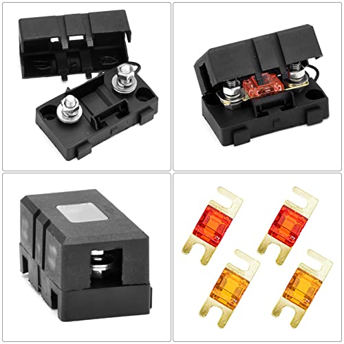 Portafusibili 4 Pezzi Portafusibili auto e 4 pezzi mega fusibile ad alta corrente, Portafusibili ANL con guscio, mega portafusibili per auto, camion, veicoli