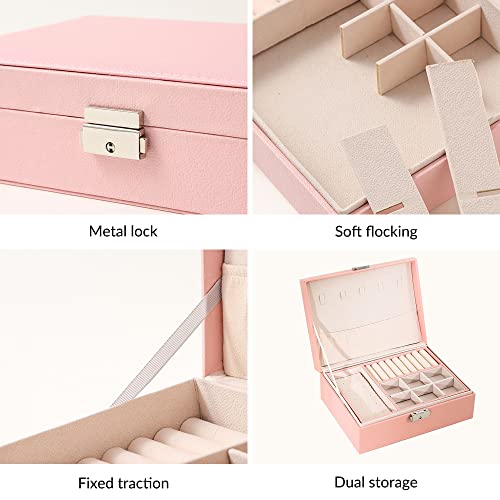Portagioie Donna 2 Strati Porta Gioielli Donna con vassoio rimovibile e divisorio e serratura Pelle PU Portagioie Bambina Portagioie da Viaggio per Anelli Bracciali Orecchini Collane Regali Rosso