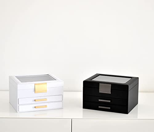 Portagioie donna uomo da camera Scatola di Gioielli Portagioielli Bianco Carbone Nero Galeara Pure (Bianco)