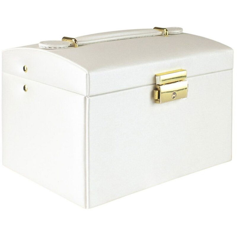 Pratico portagioie con tanto spazio per tutti i tuoi gioielli. Apri la scatola e vedrai 5 scomparti per i tuoi gioielli, 2 cinturini all'interno del coperchio destinati agli orecchini e 1 scomparto specifico per gli anelli. Sotto questi scomparti ci sono 2 spaziosi cassetti per i tuoi gioielli più grandi. L'armadio ha una chiusura liscia che mantiene chiuso il coperchio e può anche essere chiuso con la chiave in dotazione. Inoltre, il portagioie è dotato di una maniglia liscia per un facile trasporto. - Portagioie con molti scomparti per i tuoi gioielli - 3 piani con deposito per gioielli e accessori - Può essere facilmente bloccato e trasportato Specifiche: Colore bianco Materiale: sintetico Dimensioni: 17 x 10 x 14 cm Numero di scomparti: 13 La confezione contiene: 1x portagioielli